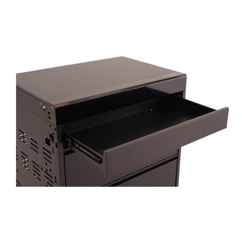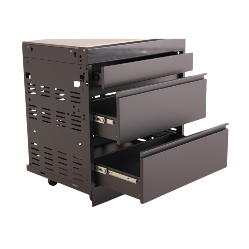 Inside, you’ll discover plenty of practical storage—including two deep drawers for larger utensils, cookware or even bags of charcoal, and a clever push-to-open accessory drawer that keeps smaller essentials neatly tucked away.