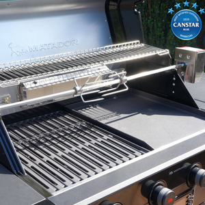 Built for durability and ease of use, the unit features heavy-duty castors, double-skinned doors, internal storage, and a dedicated compartment for your gas bottle (sold separately). Supplied with an LPG LCC27 hose and regulator, the Ignite+ is also compatible with Natural Gas when converted using an approved kit (IN 0718026 Matador Natural Gas Conversion Kit sold separately) installed by a licensed gas fitter or plumber.